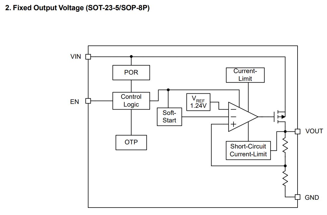 - Fixed Output Voltages: 1.2V ~ 3.5V, Steps 100mV