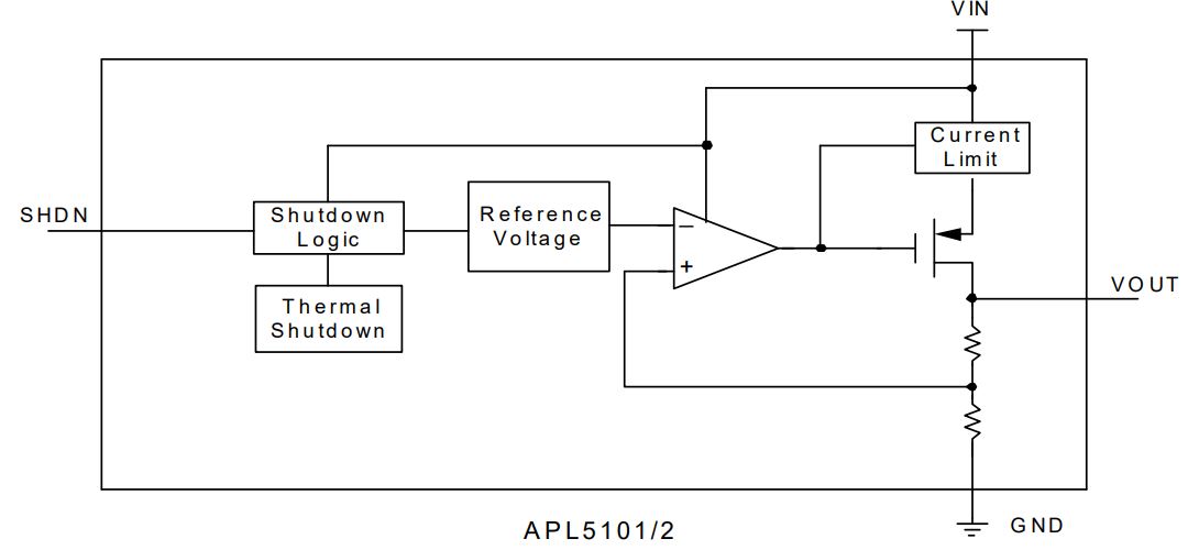 The APL5101/2 are micro-power and ultra low dropout linear regulators, which operate from 2V to 6V input voltage and deliver up to 150mA. Typical dropout voltage is only 200mV at 150mA loading. Designed for use in battery-powered system, the low 4µA quiescent current makes it an ideal choice. Design with an internal P-channel MOSFET pass transistor, the APL5101/2 maintain a low supply current, independent of the load current and dropout voltage. Other features include thermal-shutdown protection and current limit protection to ensure specified output current and controlled short-circuit current. The APL5101/2 regulators come in a miniature SOT-23, SOT-23-5, and SOT-89 packages.